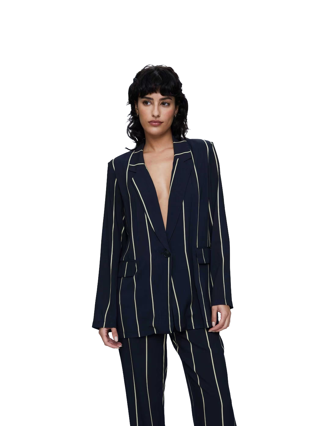 Contacta con nosotros hoy mismo para obtener más información o para adquirir tu propio Blazer de Traje con Rayas de Wild Pony. Descubre cómo esta prenda puede elevar tu estilo y confianza en ti misma. Tu viaje hacia la elegancia atemporal comienza aquí.